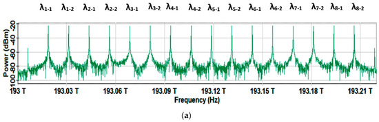 - Cheng, M.C.; Tsai, C.T.; Chi, Y.C.; Lin, G.R. Direct QAM-OFDM Encoding of an L-band Master-to-Slave Injection-Locked WRC-FPLD Pair for 28 × 20 Gb/s DWDM-PON Transmission. J. Lightwave Technol. 2014, 32, 2981–2988. [Google Scholar] [CrossRef]
