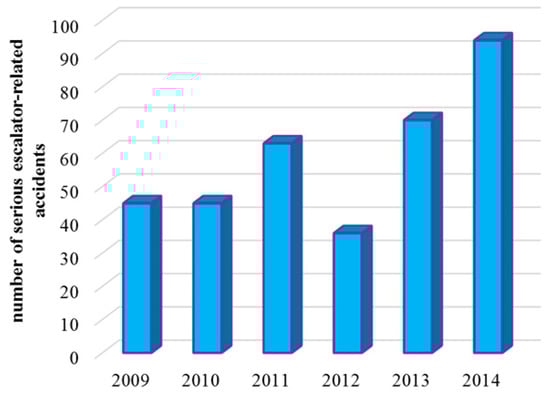 Trend of serious escalator-related accidents in China, 2009–2014 [1]. Reproduced with permission from [1], Elsevier, 2019.