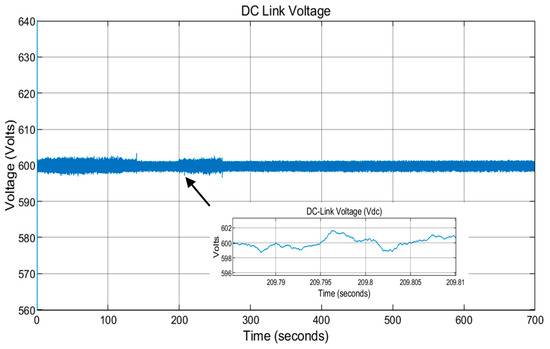 where and are grid side inductance and resistance, is grid side voltage. In this control strategy, a unity power factor is assumed, therefore, and are generated by a PI controller by comparing the reference and measured dc voltage ().