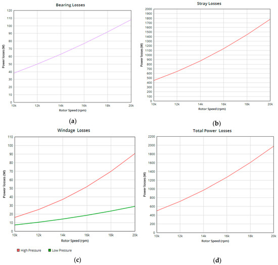 where, P is the gas pressure, is radius of the rotor disk and is the gas constant. By substituting values of parameters ( and ) and coefficients from Table 2 in Equations (18) and (19). The simplified Equations for windage losses can be written as: