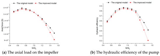 Comparison of hydraulic performance before and after impeller improvement.