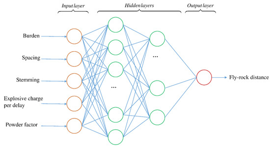 Artificial neural network (ANN) architecture for predicting blast-induced fly-rock efficiently.