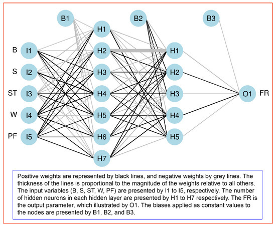 The ANN 5-7-5-1 model for estimating FR.