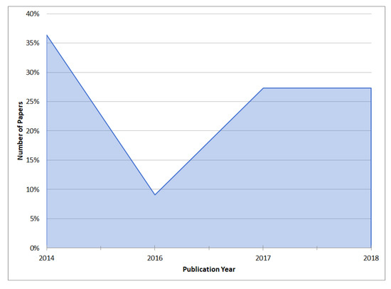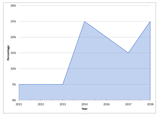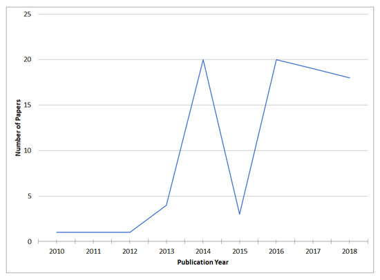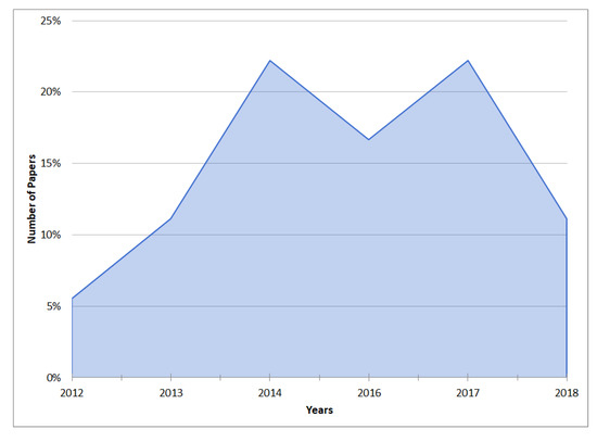 The same discard process was applied. The first phase ended with 2819 articles, which contained documents that were not relevant to the investigation. A web platform called Ryan [28] was used to facilitate the classification work collectively. Once all the results were loaded, we proceeded to read and analyze the titles and abstracts of each paper. Then, in case the content is considered relevant for the classification, a “Maybe” label tag was used to mark such papers. An “Exclude” label tag was used to mark irrelevant for papers for this research. In the first round, after the discarding process, 104 papers were obtained. Finally, after the elimination and classification process, 40 additional elements were obtained, giving a complete set of 87 articles used for this survey.