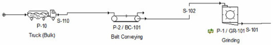 Process flow diagram of pretreatment section in SuperPro Designer.