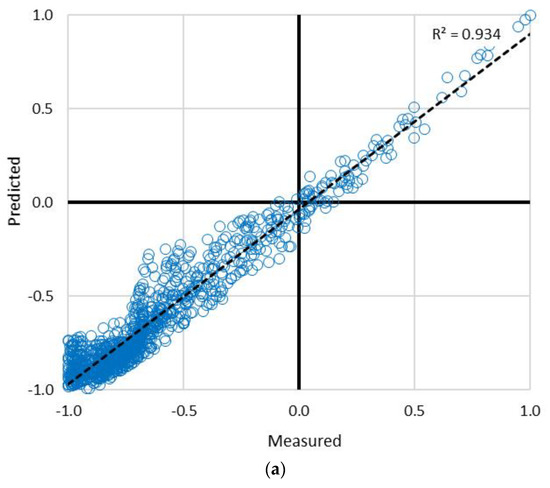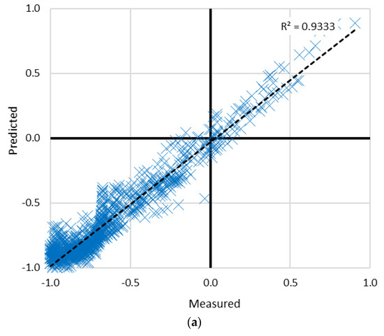 Training and testing outcomes of employed models, i.e., ANN, ICA–ANN, and PSO–ANN in predicting Fult according to their R2, are presented in Figure 13, Figure 14 and Figure 15, respectively.