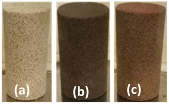 Berea sandstone samples (a) dry sample, (b) sample saturated with crude oil and (c) sample saturated with crude oil and magnetite nanofluid.