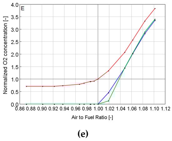 Figure 2 summarizes all these considerations by highlighting the trend of the λ measurements and the discrepancies in the use of a formulation rather than another. Some differences in λ calculations are found even if the operating condition is the same. Given the high sensitivity of TWC in the stoichiometric vicinity, in particular for CNG engines, in order to evaluate the goodness of a reaction’s kinetic scheme it is necessary to observe the measurements of single species that will finally give the correct λ value.