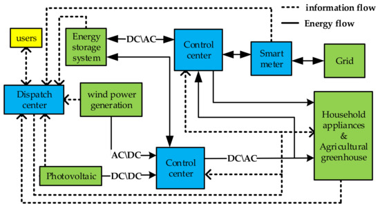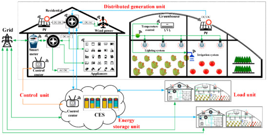 Figure 1, the control unit connects each part to help realize coordinated management of electrical energy. The energy-storage unit provides energy-storage services for all users in the microgrid. The load unit includes residential loads and greenhouse loads.