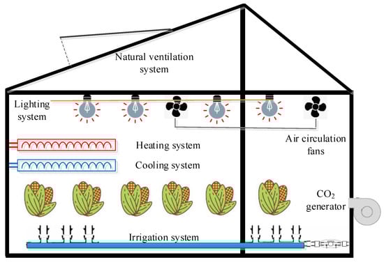 Figure 3. The electrical equipment used to control the above four indicators includes the temperature control system (heaters and coolers), irrigation system, lighting system, and CO