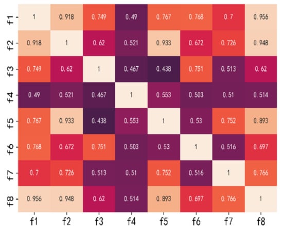 Table 2 is subjected to outlier detection, abnormal elimination and mean interpolation. Then, the Pearson correlation coefficient of the multi-dimensional vector is used as the correlation index to analyze the correlation of the sample data. The calculated correlation thermodynamic diagram is shown in