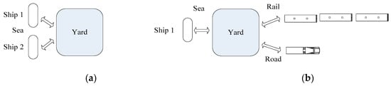 (a) Intra-terminal transshipment; (b) Inter-modal transportation.