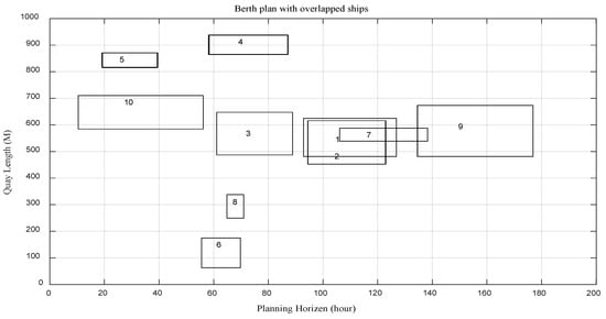 The berth plan with no overlapped ships (N = 10 ships).