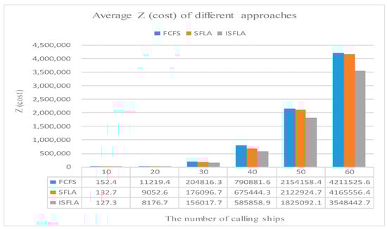 The average Z (cost) of different approaches under different coming ships.