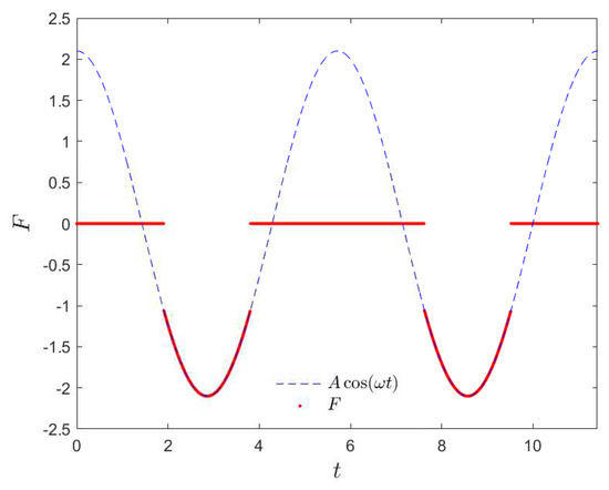 Note 1: If one considers replacing the original cosine function in Equation (9) with a constant, i.e., the intermittent external force is given by