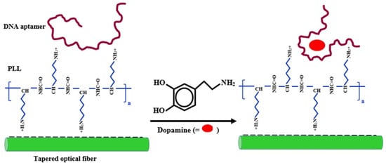 Schematic representation of the fiber optic and aptamer based dopamine detection [156].