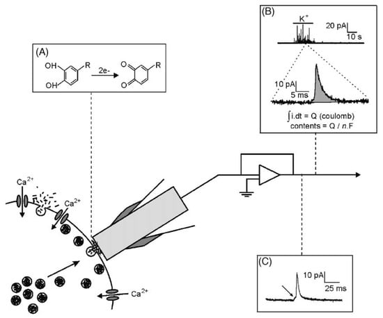 - Bruns, D. Detection of transmitter release with carbon fiber electrodes. Methods 2004, 33, 312–321. [Google Scholar] [CrossRef] [PubMed]