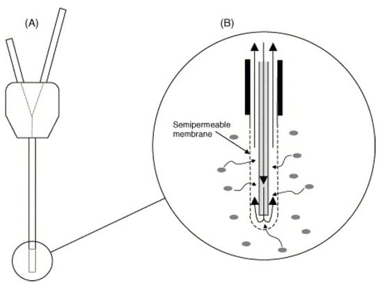 - Plock, N.; Kloft, C. Microdialysis—Theoretical background and recent implementation in applied life-sciences. Eur. J. Pharm. Sci. 2005, 25, 1–24. [Google Scholar] [CrossRef]