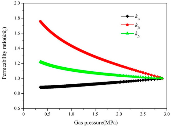 We consider the permeability anisotropy in terms of swelling/shrinkage, thermal expansion, and coal deformation for a two-dimension case with two orthogonal sets of fractures. Thus, the directional permeability kfx and kfy of the cleat system becomes [24]: