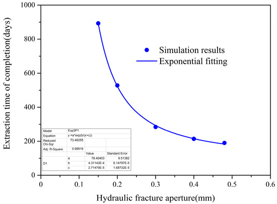 Effect of initial hydraulic fracture aperture on extraction time of completion.