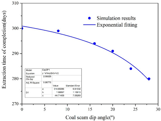Effect of the coal seam dip angle on extraction time of completion.