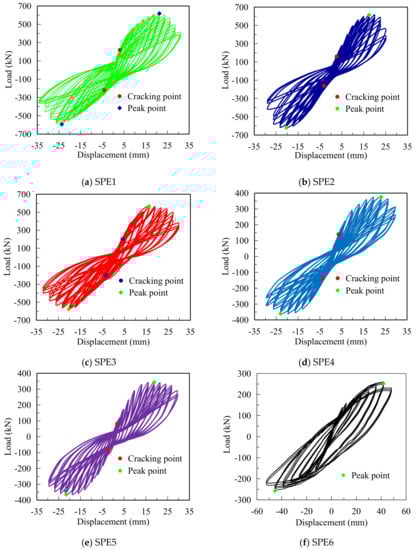 Several key load points according to the test behaviors of specimens SPE1 to SPE6 are summarized in Table 3.