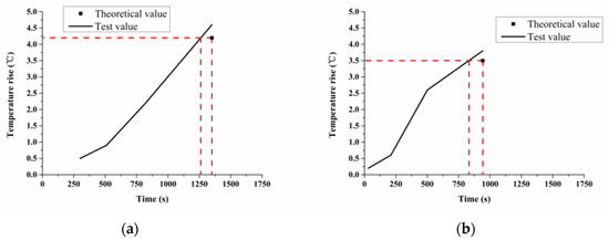 As shown in Figure 10, the temperature rise in A1 and A2 was recorded. The calculated temperature rise was compared with the measured result.