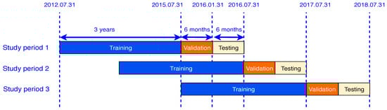 Each study period included stock data from four years, which were partitioned into three parts: the first three years for the training set, next six months for the validation set, and final six months for the test set.