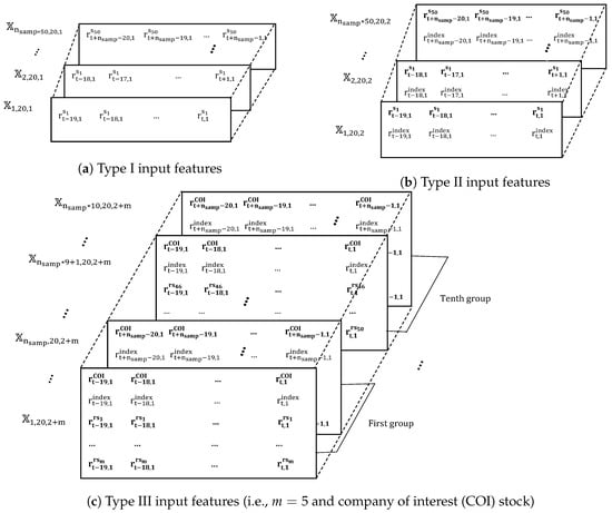 In this study, three different source data with three different types of input features are employed. Specifically, Type I input features are only one-day returns of the COI stock, Type II input features are a combination of one-day returns of the COI stock and an index (e.g., KOSPI 200 and S&P 500), and Type III input features are a combination of one-day return values of the COI stock, the index and other stocks that have the highest cosine similarity to the COI stock.