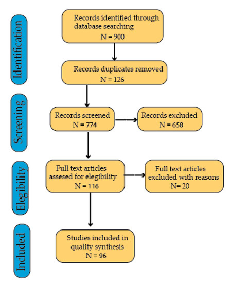 - Moher, D.; Liberati, A.; Tetzlaff, J.; Altman, D.G. Preferred Reporting Items for Systematic Reviews and Meta-Analyses: The PRISMA Statement. PLoS Med. 2009, 6, e1000097. [Google Scholar] [CrossRef]