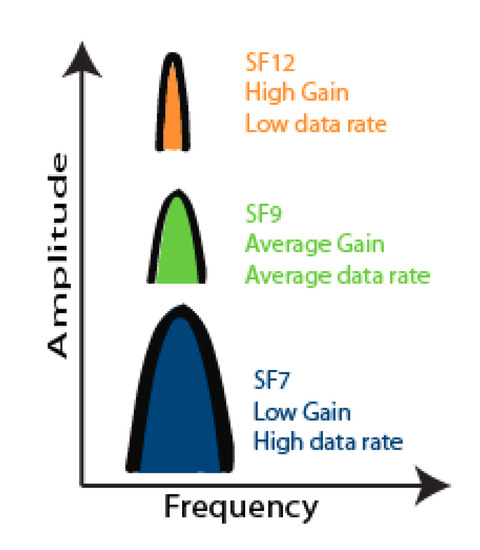 The transmission time or time on air is the sum of the preamble transmission time and the physical layer’s message transmission time, which depends on the symbol time that is directly associated with the spread factor and bandwidth.
