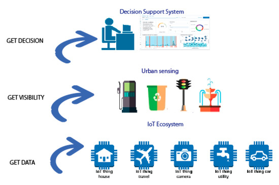 The inclusion of IoT is considered an important enabler of circular economy in a smart city. The above-mentioned study [2] considers IoT relevant to producers and designers, as they can obtain feedback in real time about products and infrastructures and keep materials in constant circulation. On the other hand, the work about IoT discussed by the Ellen MacArthur Foundation in the World Economic Forum mentioned that intelligent assets can sense, communicate, and store information by themselves. Therefore, this could lead to products that can monitor their deterioration and alert the user, figure when they need to be repaired, and schedule their own maintenance [3].