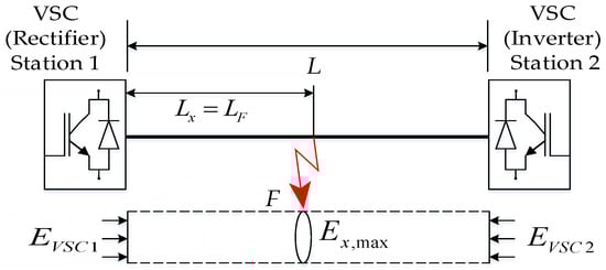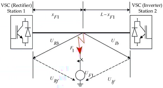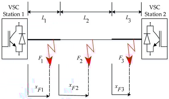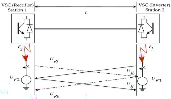 In the event of dc fault on transmission line, transients of high frequency voltage and current waves are generated which tend to circulate between TL ends and fault point. These transients are known as traveling waves. Crossley and McLaren presented the phenomenon of traveling waves in 1950 for fault location estimation [,]. Practically, TWs based techniques has replaced traditional reactance and impedance-based methods for fault location estimation because of its accuracy and high efficiency. However, TW based methods could not be applied on large scale due to shortcomings such as difficulty in detection of first TW wavefront (containing maximum information), measurement error in speed of propagated TW wavefront, inaccuracy in detection if dc faults appear near VSCs/terminals, or amplitude of dc fault TW is close to zero crossings.