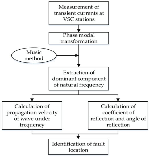 Traveling wave methods for fault locations are based on the time utilized by the generated traveling wave to reach the converter stations. These methods are highly efficient and are independent of the effects of parameters of transmission lines [,,,]. But the velocity of the propagation of TW and the wave front of the TW are key parameters for traveling wave-based algorithms. However, it is difficult to detect these parameters for high resistance faults and for gradual change in resistance. Fault location calculation is dependent on the velocity and traveling time of TW from fault point to VSC station. However, the velocity of traveling wave is highly influenced by the electrical parameters of the transmission lines and thus raise concerns on the precision of the result of fault location calculated by TW based algorithms [,,]. Therefore, in order to overcome aforementioned shortcomings, natural frequency of traveling wave is measured to predict and estimate fault location and distance from VSC station []. Traveling wave’s spectrum of faulty voltage signals can be employed for calculation of fault distance from VSC stations. When system’s impedance is zero or infinite, dc fault distance and natural frequencies of TW are defined by , respectively [,,].