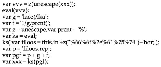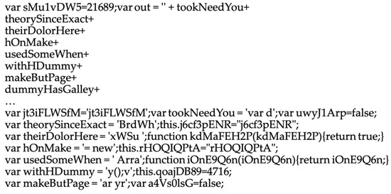 In some cases, malicious JavaScript codes contain meaningless text, as shown in Figure 10.