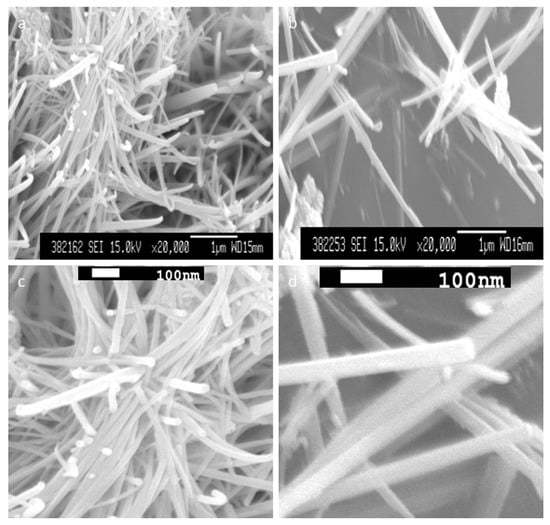 Figure 1b,d displayed individual fibers with diameters of 50 nm. Meanwhile