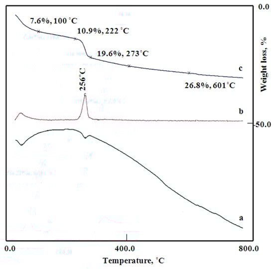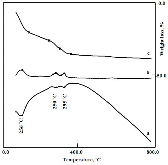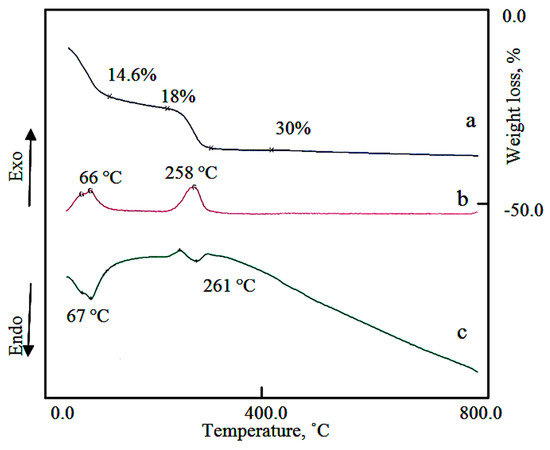 Thermal analyses of Co–Si LDHs (a) Differential Thermal Analysis; DTA, (b) Differential Thermal gravimetric; DTG, and (c) Thermal gravimetric; TG.