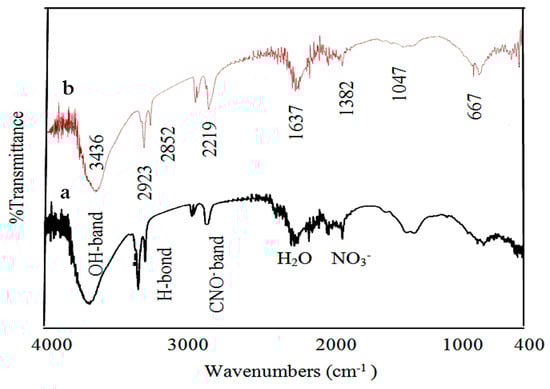 Infrared spectra of Co–Si LDHs: (a) after zirconium inclusion and (b) after zirconium and titanium inclusion.
