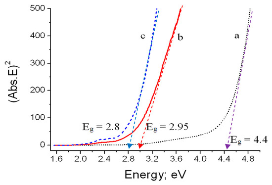 Figure 12. The direct band gap values were determined by extrapolating the linear regions of these plots to (Abs.E)