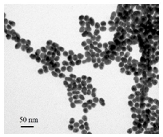 TEM image of PAO-modified GNPs after interaction with Sb3+ (10 ng/mL).