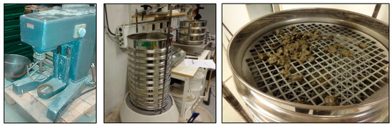 Disintegration of the soils was achieved by using a laboratory mixer with mixing speed of 107 rpm. Disintegration time (T) is defined as the time required to homogenize and separate the agglomerated soil particles into smaller sizes, which represents the mixing duration in seconds. The disintegration (mixing) times were increased in several steps from 6 to 120 s for various soil types, to investigate the behavior of soil particles. The disintegration times were chosen depending on the soil type, plasticity index and water content.