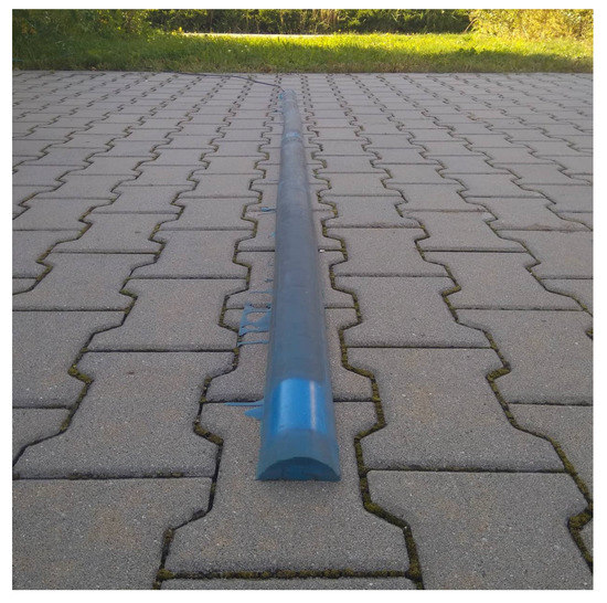 The portable strip was placed in the center of the road, which had a width of 5.55 m, so that passing cars in both directions always approached the sensor strip with at least one side of the vehicle. The placement of the sensor is shown in Figure 8.