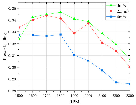 Power loading at different horizontal airflows and RPM is shown in Figure 6.