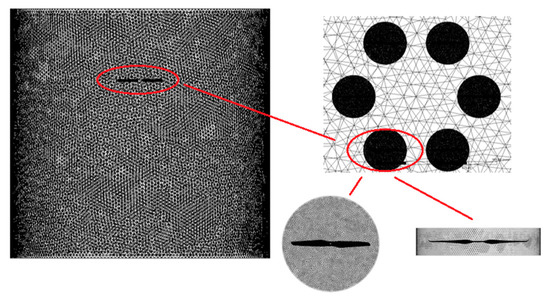 Computational fluid dynamics (CFD) are a very effective way to present the mutual interference of structures intuitively. Considering the highly unstable airflow around the Hex-rotor UAV, the sliding grid is applied in the simulation. The mesh distribution is shown in Figure 7.
