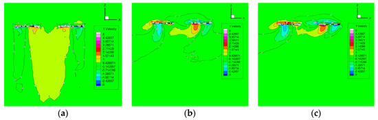 Velocity contour distribution (a) 0 m/s (b) 2.5 m/s (c) 4 m/s.