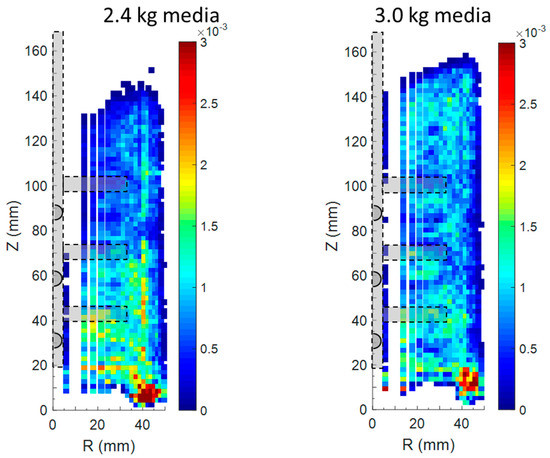 3.3. Effect of the Media Loading Evaluated from PEPT Experiments