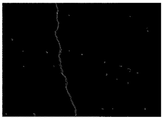The Canny edge detection algorithm is the most widely used edge detection algorithm. The algorithm adds non-maximum suppression and double threshold improvement based on the first order differentiator. Non-maximum suppression can eliminate the nonlocal maximum in the first order differentiator, and the double threshold can reduce the missed detection rate of the edge. However, the Canny operator requires manual threshold setting. A threshold setting that is too high can result in edge loss, and one that is too low cannot detect the true edge, thus reducing detection efficiency. However, the Otsu method [33] can avoid this situation. In this paper, the combination of the Otsu method and Canny operator [34,35] was used for edge detection. The results are shown in Figure 2. It can be seen that this method could accurately identify the edges.