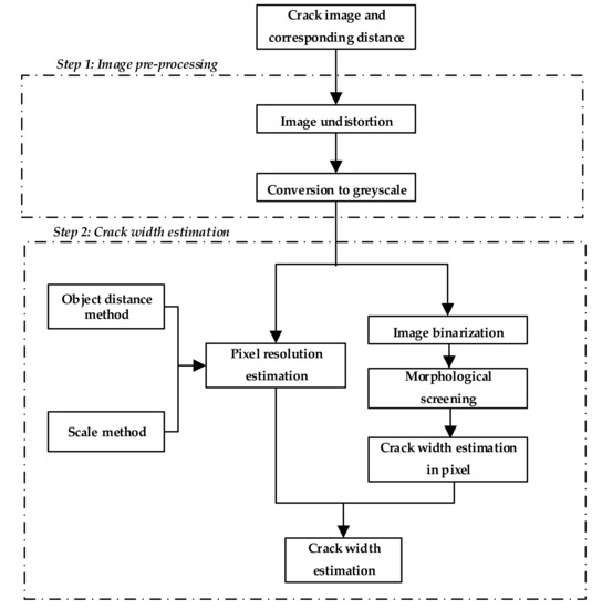 - The object distance method and the scale method were compared for the aim of estimating the crack width, and the results showed that the object distance method was more efficient than the ruler method.