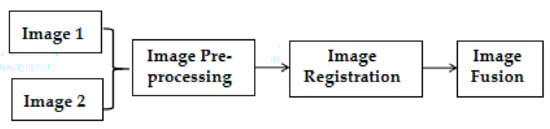 Image pre-processing primarily corrects the distortion of the original image and suppresses the noise points to prepare for the next step of image registration. Distortion correction can eliminate obvious geometric distortion in the original image, and noise point suppression can avoid the occurrence of some mismatches to the greatest extent. Image registration [40] is mainly used to extract the matching information in the original image and to perform the spatial alignment and greyscale fusion of multiple images taken in the same scene at different moments with different light intensities, different sensors and different angles. Among the constituent steps, feature matching is the basis of image registration. Feature matching refers to the finding of similar parts of two images to be registered based on feature points or greyscale to find the image similar to the search image.