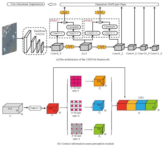 To address the above problem, especially for small target detection, in this paper, we present a single-stage detector named context information scene perception (CISP)Net for target detection on remote sensing images, which is based on the Single Shot MultiBox Detector (SSD) [